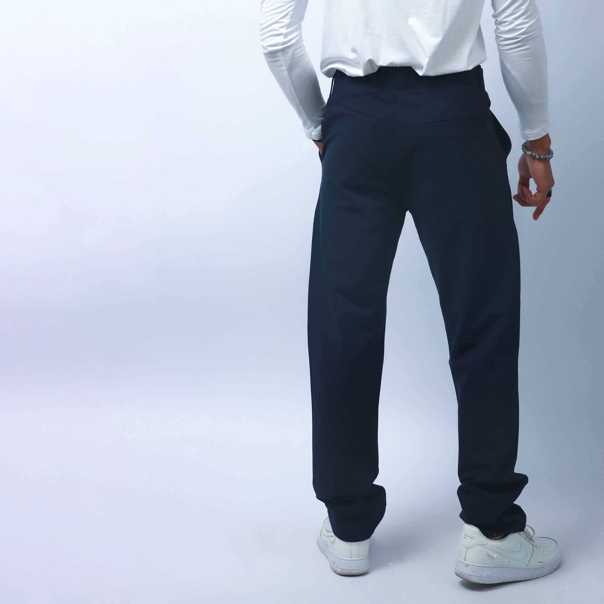 Navy blue casual pants with elastic on the waist for a comfort and stretchable fabric.