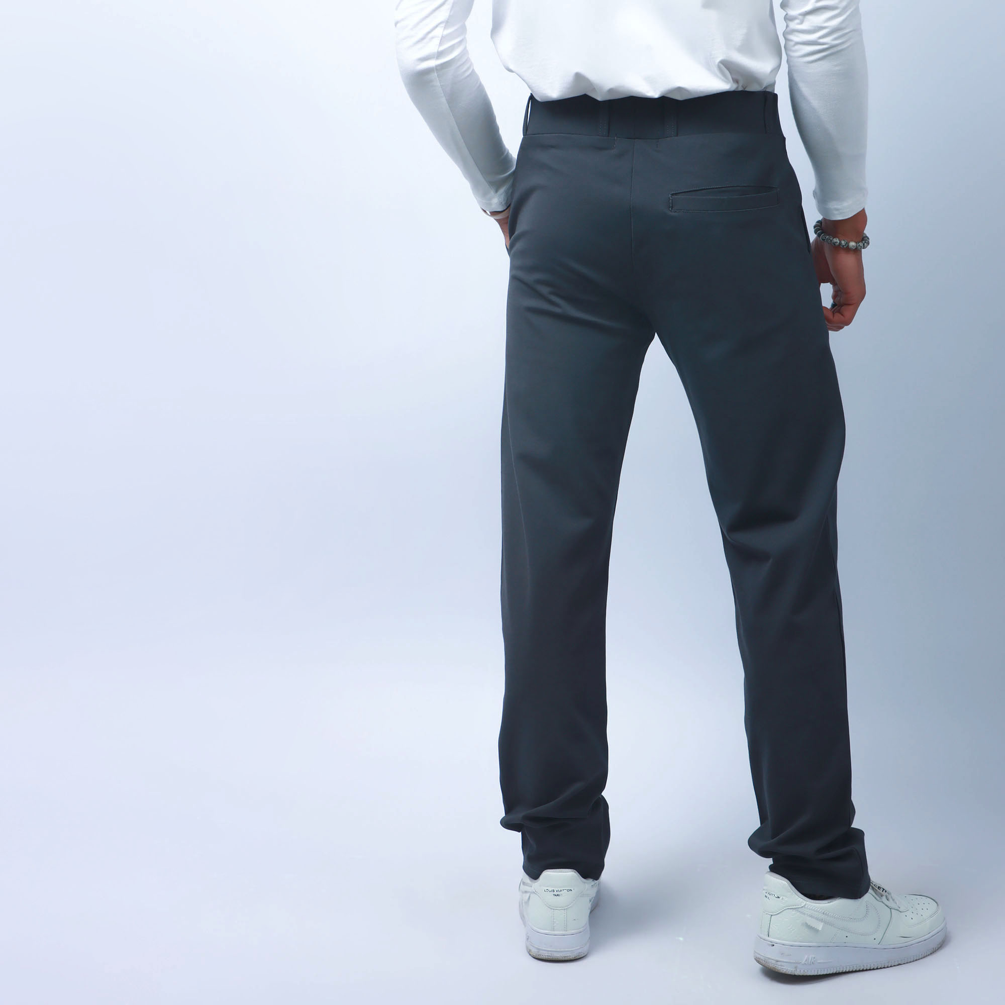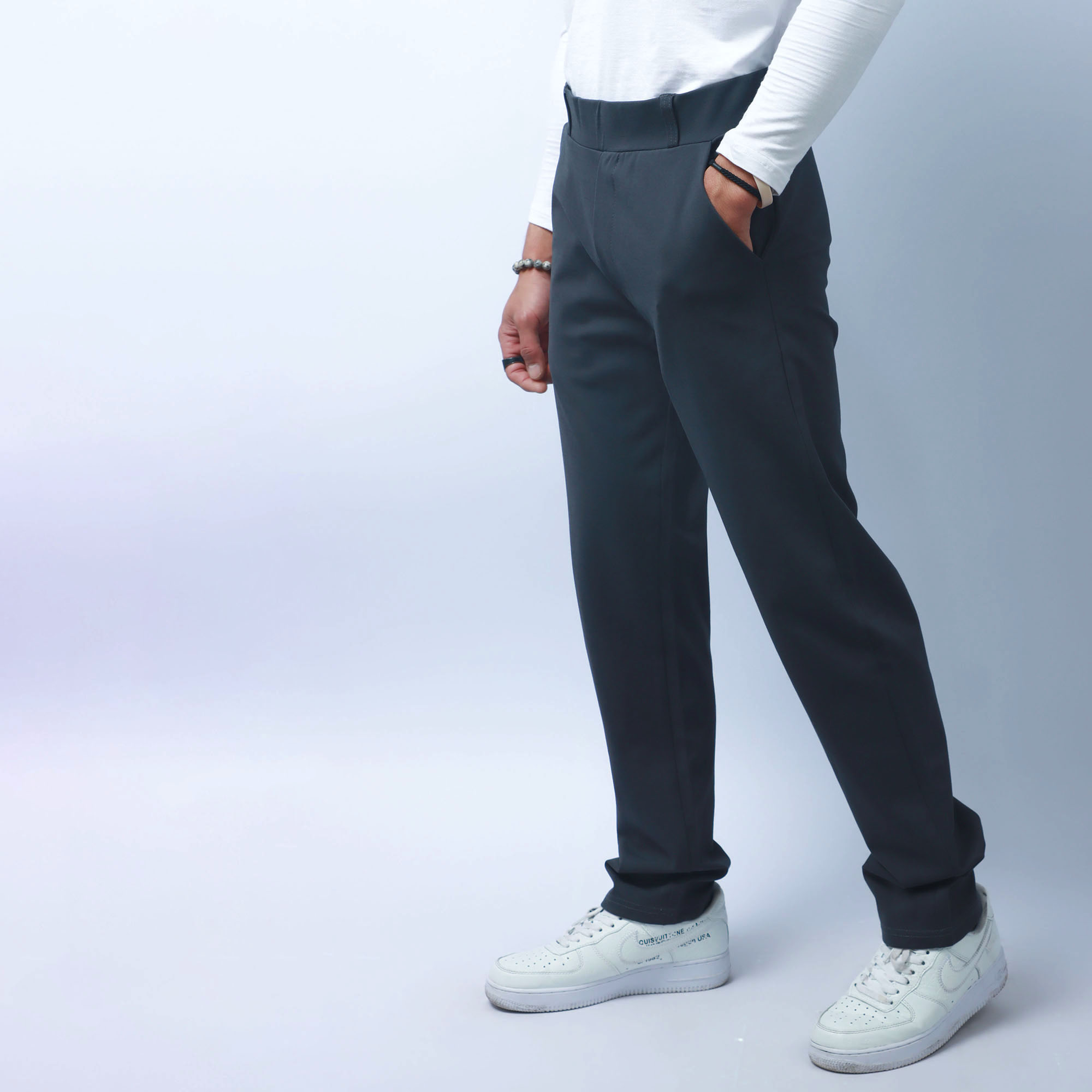 Grey casual pants with elastic on the waist for a comfort and stretchable fabric.