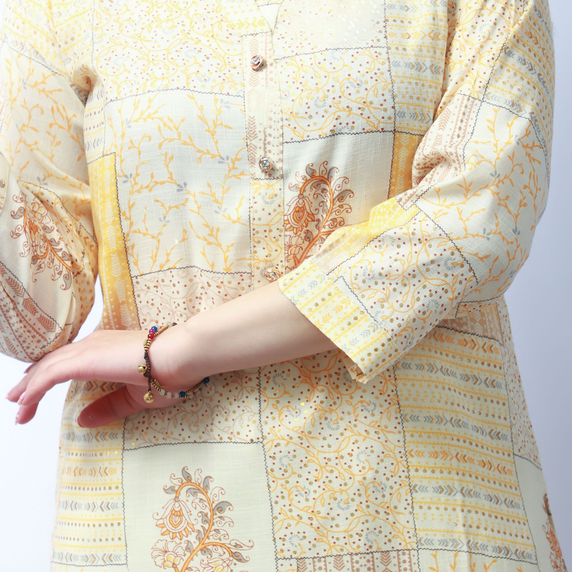 Yellow tone printed kurthi