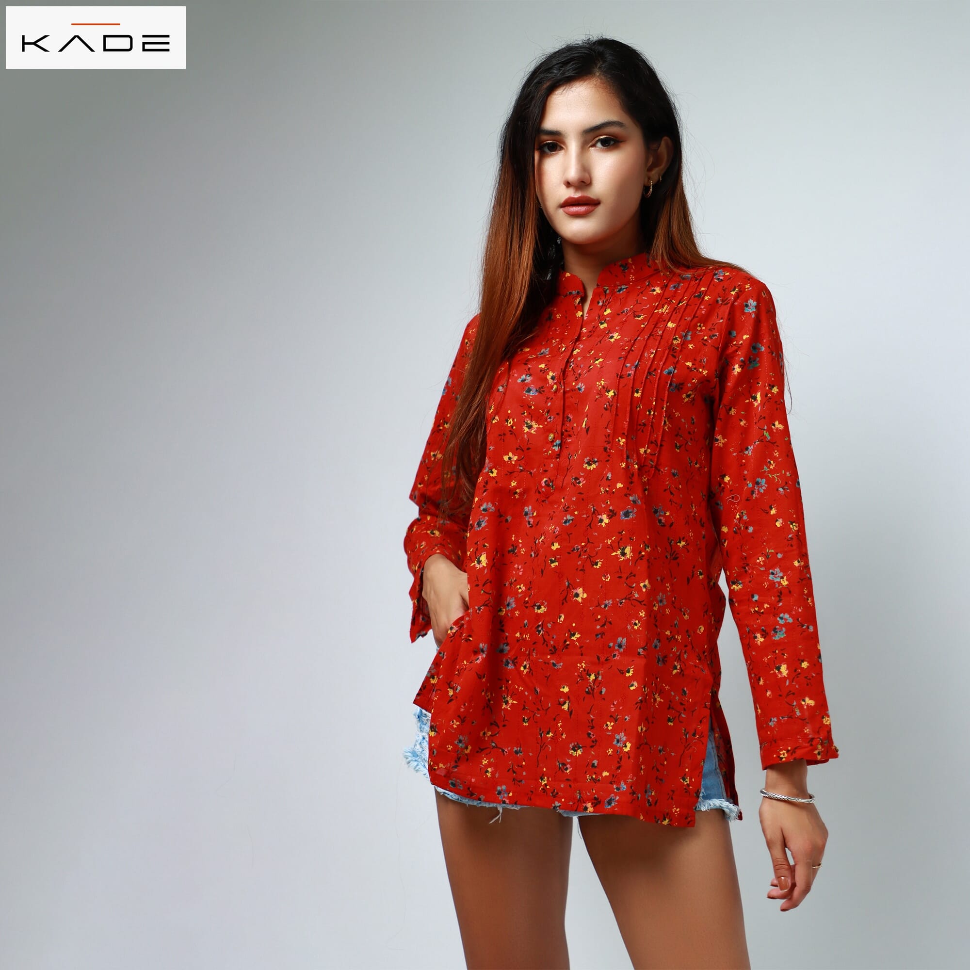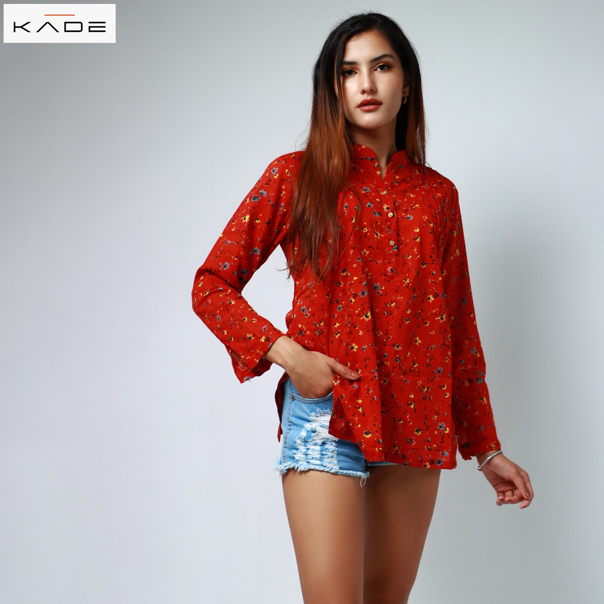 You're reviewing: KADE Red Cotton Floral Top For Women